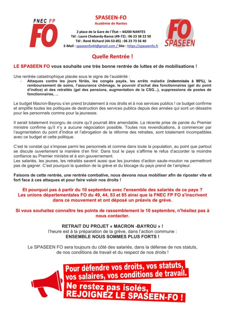 Communiqué du SNUDI FO 44 du 03/09/2025