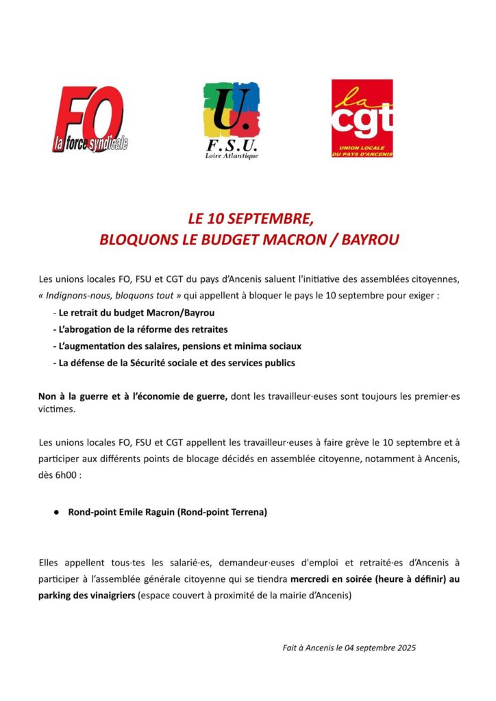 – à rejoindre le mouvement pour bloquer le pays à partir du 10 septembre 2025, en participant aux actions prévues dans le département