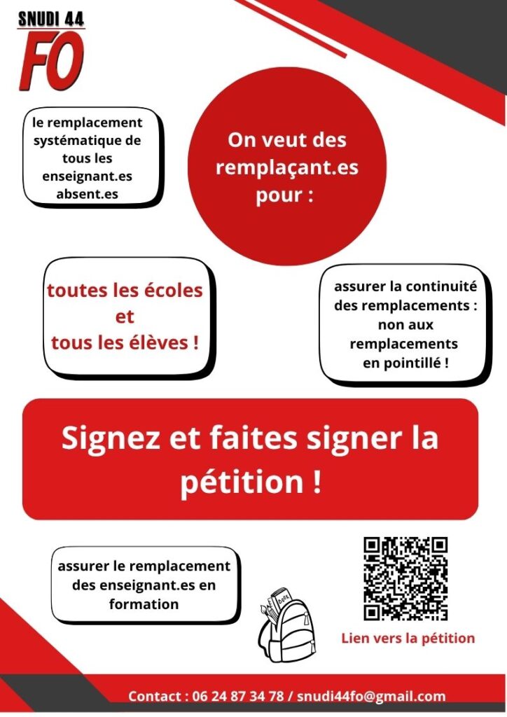Le SNUDI FO 44 revendique des moyens à hauteur des besoins : les remplacements doivent être assurer à 100% !